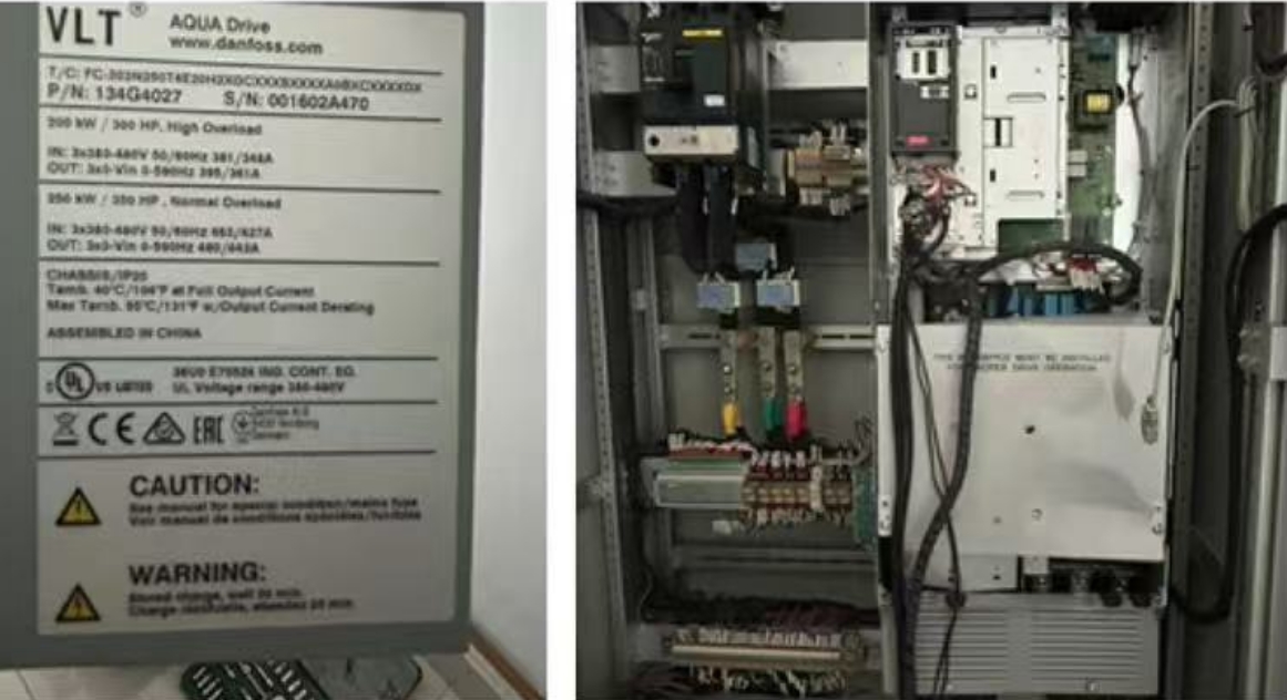 丹佛斯FC202是丹佛斯AQUA專用變頻器,是一款專用于水處理領域的變頻器,具備諸多適配水行業工況的特性與優勢。由于用戶現場使用的是 200KW 潛水泵,且無法獲取電機參數,所以上海津信維修人員首先對變頻器參數進行了調整,增大了電機額定電流。重新帶電機運行后,變頻器能夠上升至 45Hz,但隨后再次報出電流超限故障,并且電機發出異常聲響,呈現出明顯的缺相特征。?