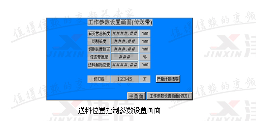 改造系統(tǒng)采用三臺Danfoss變頻器和兩塊MCO305,以及一個臺達HMI。系統(tǒng)采用RS485通訊。主機旋轉(zhuǎn)采用4kW變頻器直接拖動,通過HMI直接設(shè)定其運行頻率。送料位置控制參數(shù)如下圖所示。這些參數(shù)在變頻器第19組參數(shù)開放出來,之所以采用HMI,主要是為了方便用戶進行操作。